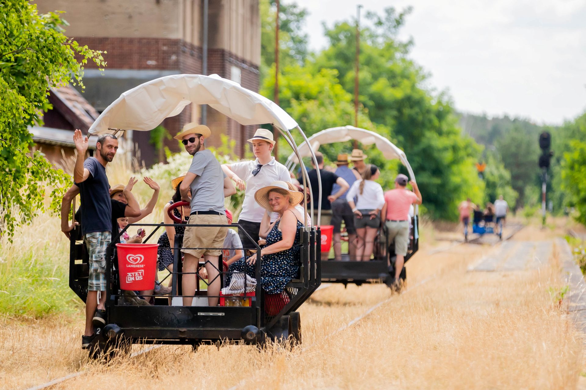 Erleben Sie gemeinsam eine besondere Fahrt mit der großen Hebeldraisine ab dem Erlebnisbahnhof Mellensee. Zusammen bewegen Sie die Draisine in Richtung See und wieder zurück und genießen dabei Natur, Bewegung und jede Menge Spaß. Je nach Wetterlage ist die Fahrt mit Sonnen- oder Regendach möglich, sodass das Erlebnis bei nahezu jedem Wetter stattfinden kann.